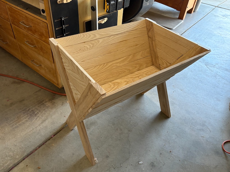 In the parish where I serve as Priest in Charge, when they search for their new lead priest (rector), I made a simple manger out of Ash for Advent straw. I resawed 4/4 Ash and left the rough side out to give the manager a bit more of a rustic, barnyard feel.