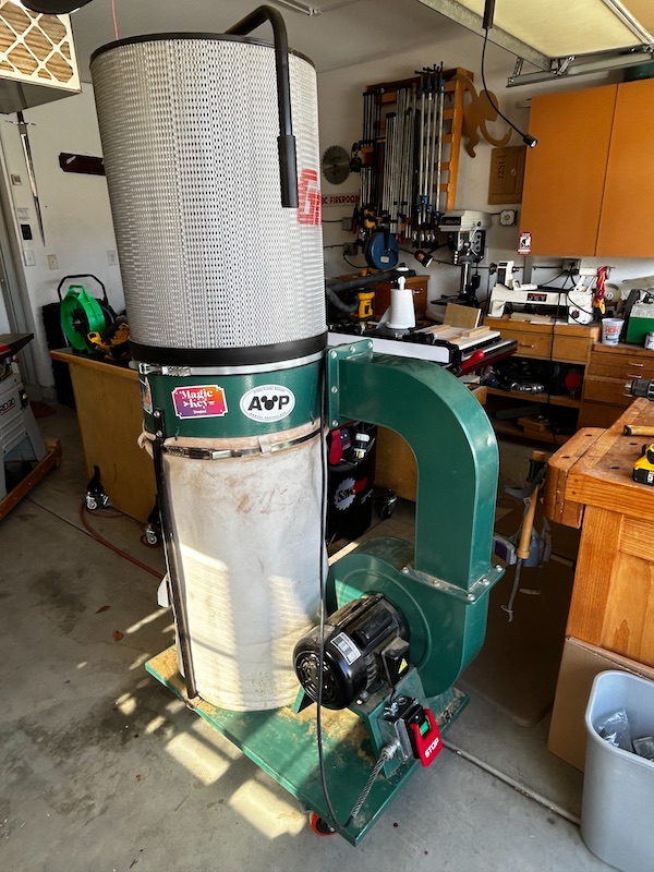My main dust collector is a Grizzly G0548ZP with upgraded casters and an American Fabric Filter heavy canvas collection bag. The power switch gave out, so I have replaced that as well.