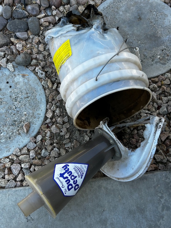 I have literally collected hundreds of pounds of Baltic Birch dust from the router into this Dust Deputy and bucket and have never had anything close to this before! It was a real shocker. Of course, it was just over 100 degrees in my shop that late morning. So, that is a new wrinkle I need to figure out. Needless to say, I am cautious these days to check all my dust collectors after finishing up in the shop for the day!