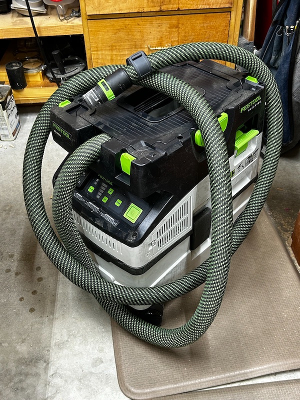 The Festool CT MIDI 1 HEPA is my second Festool purchase. It lives next to my bench and is ready for general cleanup and required dust collection for the Domino and the 3M sander. It is a VERY quiet and powerful dust extractor, and, in my opinion, well worth the premium price for this tool.