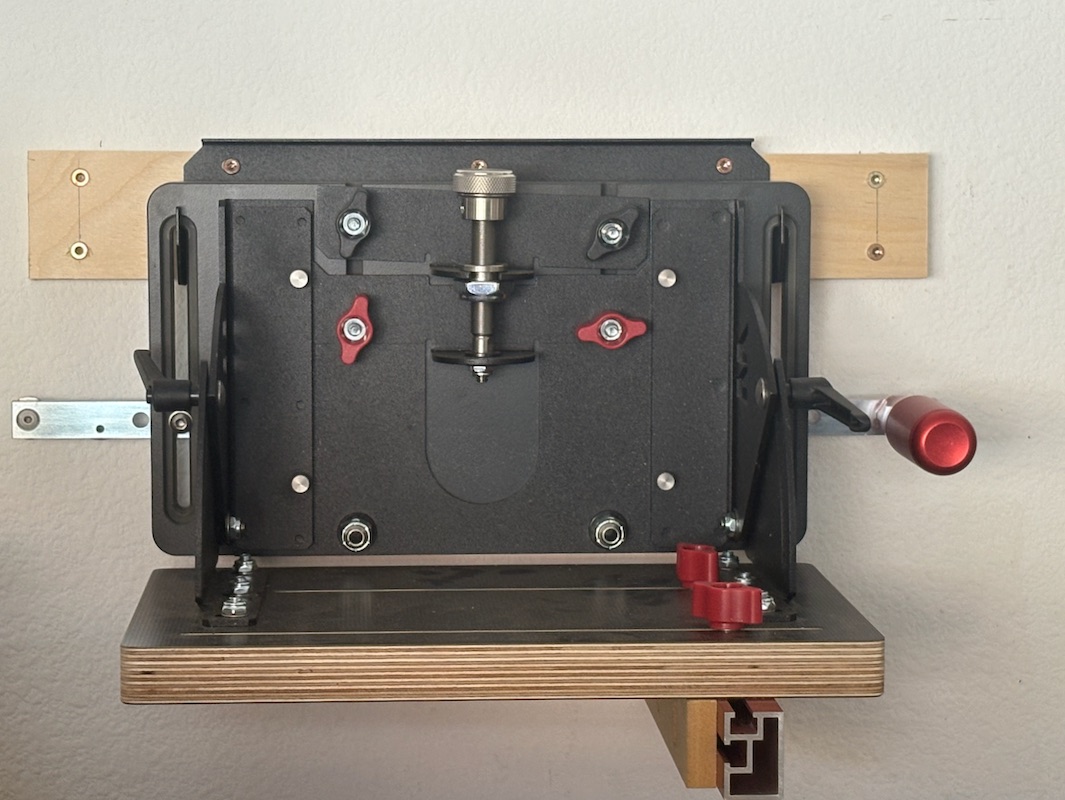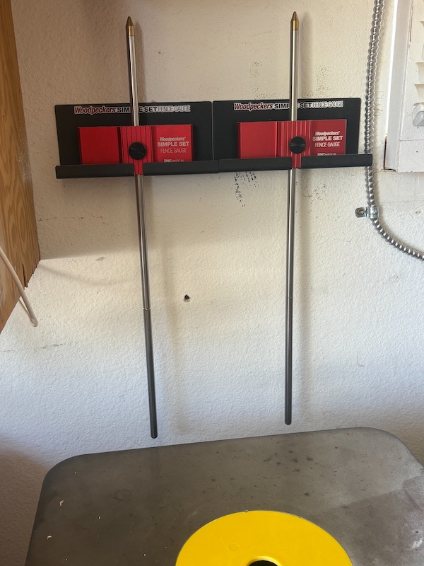 I was surprised that the Woodpeckers doesn't offer a wall mount, as having the gauge kick around a workbench is not a very good idea. Building a simple mount out of some scrap Baltic Birch was a must!