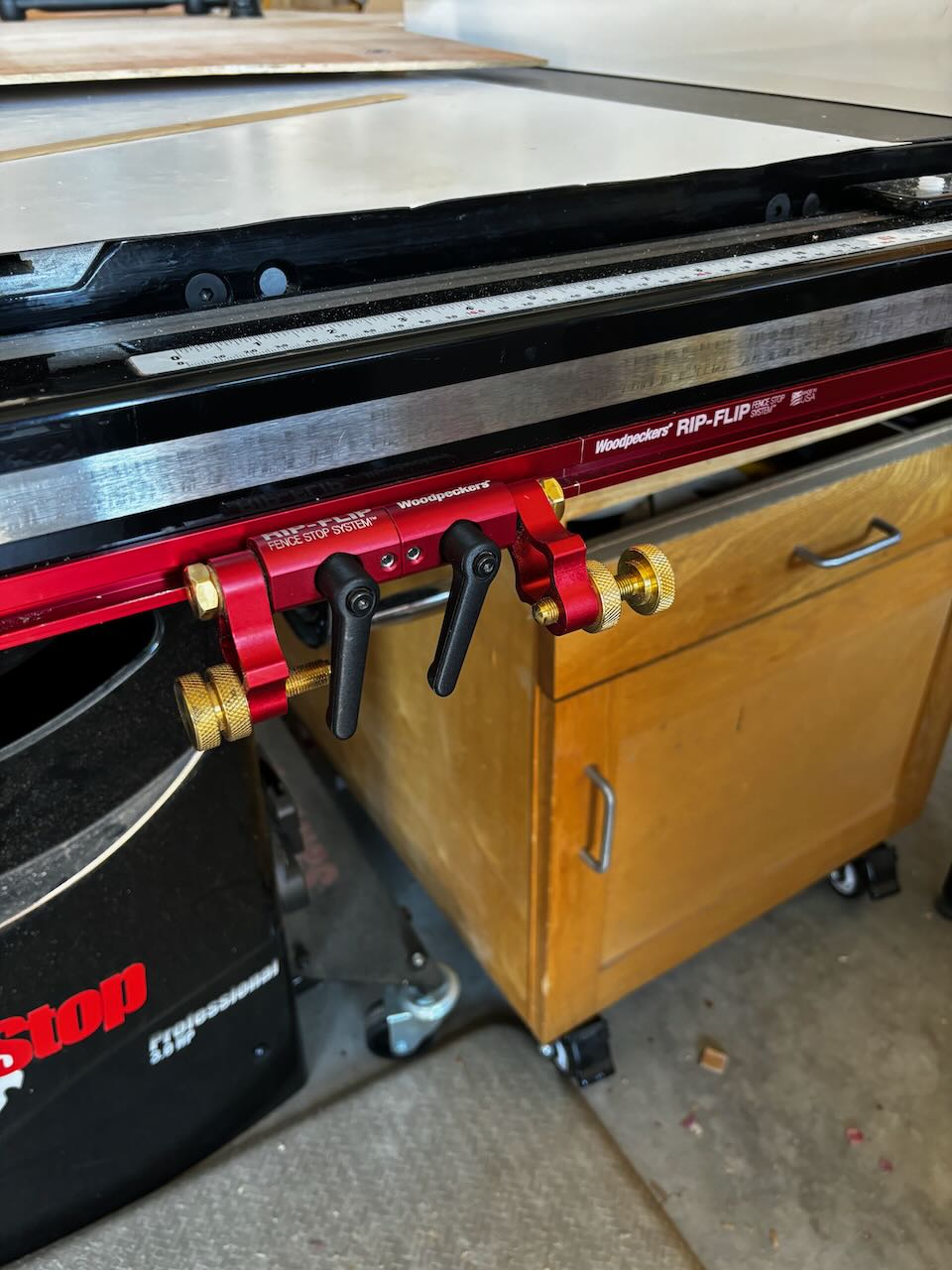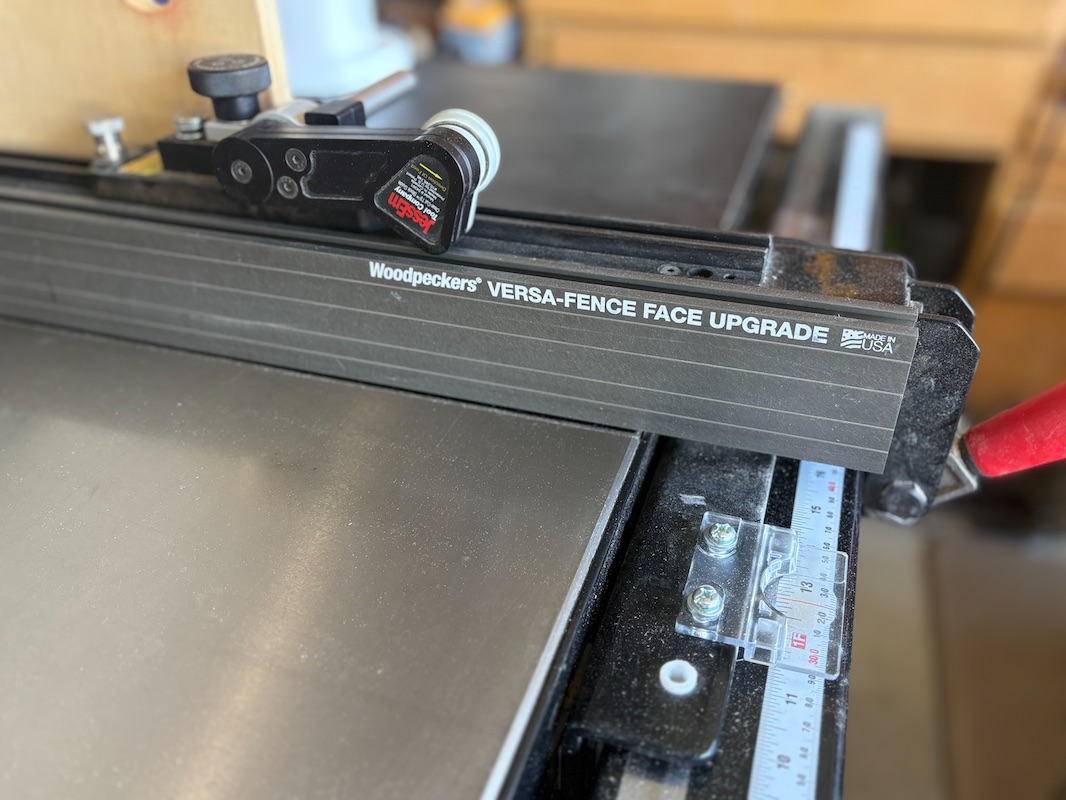Living in the desert, we normally have very little humidity, so wood movement is not much of a problem, especially for the table saw fence. I'm a bit type-A, and when I ran a dial gauge along the original Saw Stop fence, the needle was jumping back and forth a bit too much. Replacing the stock fence with the Vera Fence—dead smooth and no movement!