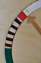 This was our single most popular commission--probably because of the math! Math is NOT my friend. Getting a straight stick of wood to wrap around a circle with a 7” radius in 52 equal segments took some noodle scratching. Our liturgical calendar is a bit larger than the commercial version. Our base is 19.5” in diameter. It is made from 3/4” Baltic Birch plywood.