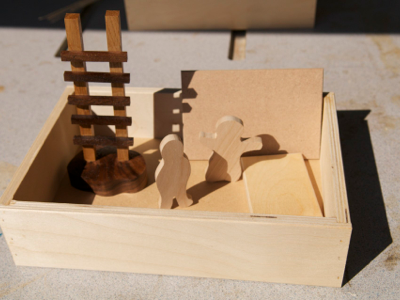 The wood items of this story are two People of God and a simple block of wood to represent Peniel. The most time-consuming part of this story was the ladder. It is made from White Oak and Walnut.